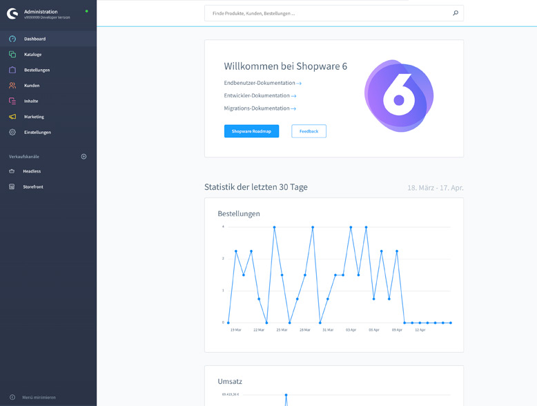 Im Juni 2019 hat der Schöppinger Hersteller die neue Version Shopware 6 vorgestellt. Dabei handelt es sich um ein völlig neu entwickeltes Shopsystem, bei dem der API-first-Ansatz verfolgt wird. Dies macht Shopware 6 zu einer vollwertigen Headless-Lösung. Headless bedeutet hier die Trennung von Frontend und Backend. Dadurch erhält man mehr Flexibilität sowie eine einfache Erweiterbarkeit der gesamten Shopumgebung.